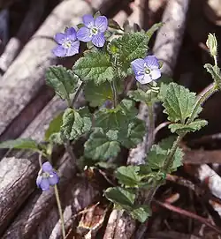 Veronica calycina, commonly known as hairy speedwell or cup speedwell,[3] is a flowering plant in the family Plantaginaceae. It is a trailing perennial with dark green leaves, purple-blue flowers and is endemic to Australia.