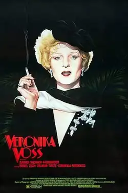 Veronika Voss (German: Die Sehnsucht der Veronika Voss, lit. "The Longing of Veronika Voss") is a 1982 West German black-and-white drama film directed by Rainer Werner Fassbinder, and starring Rosel Zech, Hilmar Thate, and Cornelia Froboess. Loosely based on the career of actress Sybille Schmitz, the film follows the titular Veronika Voss, a morphine-addicted film star in 1955 Munich who begins an affair with a sports journalist; soon after, he discovers that Veronika is under the control of a corrupt neurologist scheming to bleed her of her wealth.