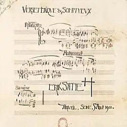 Verset laïque et somptueux (Secular and Sumptuous Verse) is a pièce d'occasion for piano composed in 1900 by Erik Satie. With it he bid an ironic farewell to the style of his "Rosicrucian" or "mystic" period, which he ultimately dismissed as "musique à genoux" ("music on its knees").[1] It was written for an ephemeral publication and never performed in Satie's lifetime.[2]