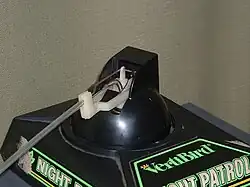 Power was provided by 4 'D' sized alkaline batteries in the base. They also doubled as the weight to hold down the base.