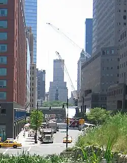 - From Church Street to West Street for authorized motor vehicles and pedestrians. This portion was widened during construction of the World Trade Center, and separates WTC on the street's south side from the Verizon Building on the street's north side.