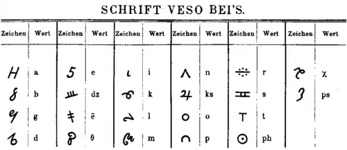 Veso Bey alphabet