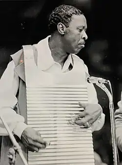 It is played as a rhythm instrument by being stroked downward with either bottle openers or spoons.[1] Many of these instruments are homemade, but Don Landry of Louisiana is one professional maker, making them for Clifton Chenier's band and Elvis Fontenot and the Sugar Bees, amongst others.