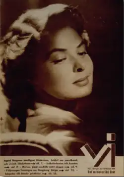 The 12 February 1944 cover displayed a portrait of "Ingrid Bergman, intelligent film woman," announcing an article on "women in American and Swedish film," and others titled "Folk movements and art;" "Hofors, lively community in the middle of the forest;" "The truth about Hong Kong;" and invited readers to enter a literary prize competition.