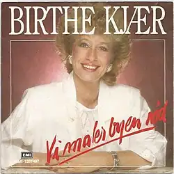 "Vi maler byen rød" (Danish pronunciation: [vi ˈmɛːlɐ ˈpyˀən ˈʁœðˀ]; "We're painting the town red") was the Danish entry in the Eurovision Song Contest 1989,[1] written by Søren Bundgaard (music) and Keld Heick (lyrics) and performed in Danish by Birthe Kjær. The English version of the song is called "I'm Chasing Butterflies".