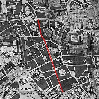 ![]() Via Alessandrina (marked in red), a detail from the map La Nuova Topografia di Roma by Giambattista Nolli (1748). | |