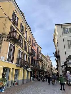 The street, which is the main commercial destination in Ivrea, hosts numerous shops and establishments. It is mainly pedestrianised, with vehicle access restricted to residents only.