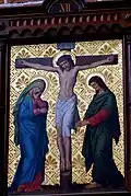 | VIII. | Jesus meets the three women of Jerusalem. | A baritone soloist sings Nolite flere super me, Luke 23:28 | |