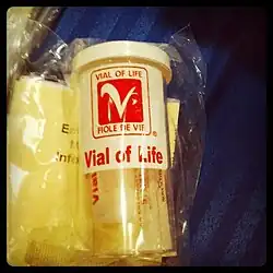 The Vial of Life (French: Fiole de vie),[1][2] also known as Vial of L.I.F.E. (Lifesaving Information for Emergencies), is a program that allows individuals to have their complete medical information readily available in their homes for emergency personnel to reference during an emergency. The program provides the patient's medical information when the patient is unable to speak or remember it. Vial of Life programs are commonly used by senior citizens and promoted by senior center organizations,[3] fire departments, and other community organizations.[4]