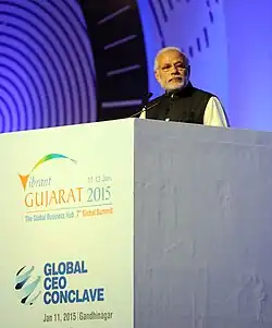 - ^ DeshGujarat (10 November 2008). "Modi showcases Vibrant Gujarat to Industry Captains in Mumbai". DeshGujarat. Retrieved 5 January 2024.