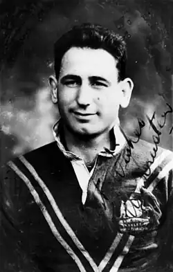 Louis Victor Armbruster[1] (born 12 July 1902 – 11 October 1984) was an Australian rugby league footballer for New South Wales, Queensland and Australia. He is considered one of the nation's finest footballers of the 20th century.[2] Standing 6 feet 1 inches tall (1.85m) and weighing 191 lbs (86 kg), Armbruster primarily played in the Second-row, but he could also play Lock.[3]