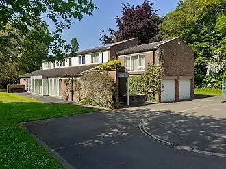 The early buildings at the university were constructed with the CLASP system, giving them a distinct brutalist appearance. In contrast, the Vice-Chancellor's House, while still contemporary, used bricks and a more traditional appearance to fit into its surroundings.[6] While the simple appearance of the student accommodation reflected their purpose of occupation by students for short periods, the traditional and more obviously domestic nature of the Vice-Channcellor's House reflected his commitment to the university and significant role in its everyday life.[7] However, this was not to everyone's taste, with Jeremy Thorpe describing it as "the back end of a crematorium".[2]