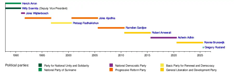 - ^ "Kabinet van de Vicepresident - Historie". www.gov.sr. Archived from the original on 3 February 2018.