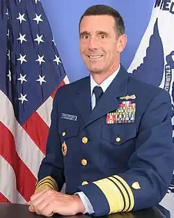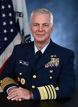 - ^ Originally a vice admiral when he assumed office on August 6, 2015. Michel was promoted to admiral on May 24, 2016 when the Coast Guard Authorization Act of 2015 elevated the vice commandant's rank to admiral.