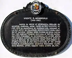 - ^ "Order of National Artists: Vicente Manansala". National Commission for Culture and the Arts. Retrieved July 25, 2021.