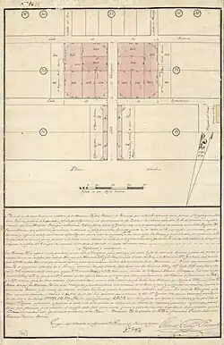 The Cortes of Cádiz issued a royal order on October 28, 1812, awarding Pintado the title of Captain of Infantry, which made him a full army officer.[7] In the same year, a decree by the Spanish authorities mandated the renaming of plazas and streets in Pensacola, as well the construction of a new church and government buildings. Consequently, Pintado elaborated a street map of the town, the so-called "Pintado plan", which later received the approval of the city council on December 7, 1813.[8]