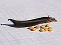 This plant's dried fruit is a legume, that can measure from 3 to 5 centimetres. Usually the legume gets darker as it ages.[5] When ripe, the legume splits open and releases seeds.[4]