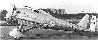 The Jockey was taken to RAF Martlesham Heath for its first flight in April 1930 and subsequent testing.[2] A rear fuselage vibration was at first thought to be aerodynamic but proved to be structural; it was cured after Barnes Wallis redesigned the internal bracing. The rudder was modified, its balance removed and a trim tab installed. Spats were added to the undercarriage and a Townend ring enclosed the engine. The same aircraft was renamed the Type 171 Jockey when the Mercury was replaced by a 530 horsepower (400 kW) supercharged Bristol Jupiter VIIF. The intention to power the Jockey with a supercharged Mercury IVS2 was never realised, after the sole Jockey was lost in a flat spin on 5 July 1932, crashing at Woodbridge, Suffolk, the pilot bailing out at 5,000 feet (1,500 m).[3] The results of the tests had been sufficiently good to encourage Vickers to refine its design into the Vickers Venom.[1]