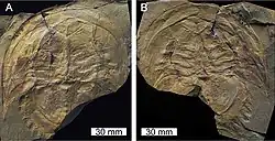 Victalimulus mcqueeni is an extinct horseshoe crab, from Early Cretaceous (Aptian) Koonwarra Fossil Beds in eastern Victoria, Australia. The holotype and only known specimen was discovered by James McQueen who was encouraged by Leon Costermans to take it to the Museum of Victoria. Unlike modern species of horseshoe crab, it was likely native to freshwater as the Koonwarra Fossil Beds was, during the Aptian epoch, a freshwater lake.[1][2]