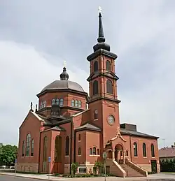 Cordella also designed number of Latin churches. In 1904, he designed the Polish Church of St. Casimir in Saint Paul.[7][5] He also designed the Polish-Baroque Church of St. Joseph in Browerville (1907),[2] St. Peter's and St. Mary of Czestochowa parishes in Delano (1913),[5] the Romanesque-style St. John the Baptist in Vermillion (1914),[10] St. Francis Xavier in Buffalo (1916),[2] the Renaissance Revival-style Sts. Cyril and Methodius in Minneapolis (1917),[11] St. Stanislaus in Perham (1922),[12] combination Spanish Mission and French Renaissance-style St. Luke's in Sherburn (1922),[13] Holy Cross in North Prairie (1922),[14] the Baroque Revival-style Our Lady of Lourdes in Little Falls (1923),[15] and Holy Cross in Northeast Minneapolis (1927).[7] In total, Cordella designed around twenty churches for various immigrant ethnic groups.[16]