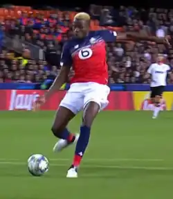 Despite being a reported target of several European clubs, French Ligue 1 club Lille confirmed the transfer of Osimhen on 1 August 2019, signing a five-year contract.[31] The transfer fee was reported to be priced at €12 million plus another €3 million in various bonuses and add-ons.[32][33] Upon his arrival, he told the club's official website: "Lille is a very good club which has a quality project and high-class players, and especially these last years. Great Nigerian players (Peter Odemwingie and Vincent Enyeama) have also played here."[34][35] Osimhen was given the number 7, which was previously worn by Rafael Leão.[36]