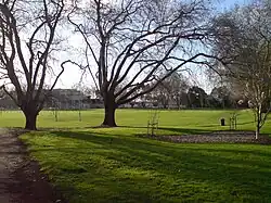 During the 1918 flu pandemic the park was used as an open air depot for the storage of the bodies of the many hundreds who died. The Pavilion was used as a temporary morgue. From here the bodies were transported to the Railway Station at the bottom of Queen Street and sent on to Waikumete Cemetery in West Auckland where they were interred in a series of mass graves.[1] During the Second World War, the park was used for accommodation of US Armed Forces and covered with temporary huts. In the early 1950s, the park escaped closure and industrial redevelopment after it was decided that the facility was of regional use and the provision of parks in the outer suburbs would not suffice to replace it.[1]