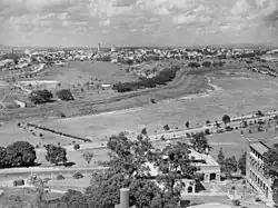 The park was again reduced by the construction of Victoria Park Golf Club. In the 1920s, municipal golf courses were being established throughout Australia and in 1922 the Queensland Golf Association proposed to the Lord Mayor of Brisbane, William Alfred Jolly, that a municipal golf course be established in Victoria Park. In 1926 the proposal was accepted. The opportunity came after the section of Victoria Park, reserved as the intended site for the University of Queensland, was no longer required after the university acquired their St Lucia site from a generous donation of £63,000 to resume over 200 acres (81 ha) by James and Emelia Mayne.[3] The eighteen hole golf course was laid out by the surveyor Stan Francis, who was an ardent golfer. It was constructed during the Depression by men employed in the Intermittent Relief Scheme . The Victoria Park Golf Course was opened in 1931. The first Victoria Park Golf Clubhouse was designed in the Spanish Mission style by Alfred Herbert Foster and was built in 1931; it is now listed on the Queensland Heritage Register.[3]