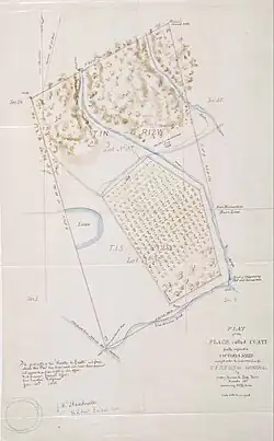 Eulalia Pérez de Guillén Mariné, who was influential at the mission, aided Victoria in 1838 in receiving a land grant, Huerta de Cuati, for her work at the mission.[7] This was a 128.6-acre (52.0 ha) grant about 2 mi (3.2 km) northeast of the mission. This was noted as "one of the few Mexican grants given to an Indigenous person in southern California."[2] The grant was given solely to her by name, as her husband Hugo Reid had not yet become a naturalized citizen of Mexico.[1]