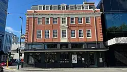 The Armstrongs Building was a department store that faced into the eastern-side of the square on Colombo Street. Opened in 1933,[105] it was a replacement for the two older buildings that had previously occupied the site. The department store closed in 1968, and the building was sold to the Union Steam Ship Company and renamed to the Union Centre Building. For the later part of its life it was occupied by a law firm, banks and travel agencies. The building was damaged by a major fire in October 1993, but the damage was not structural and it was soon repaired. The fire was considered to be suspicious.[106] In 1999 a bar called the Vic and Whale opened in the building, and became a popular part of the Christchurch nightlife.[107]