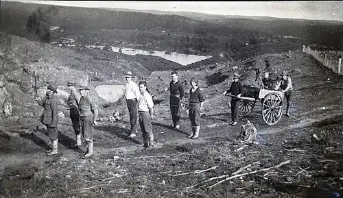 The forests surrounding Creswick had been thoroughly cut over during the gold mining era from the 1850s until around 1900. The forester John La Gerche[11] was placed in charge of the forest land around Creswick in the late 1880s. He established a State nursery at nearby Sawpit Gully in 1888 to aid the revegetation of the forests around Creswick. Land rehabilitation and the need to create softwood resources meant that some of the first plantations of radiata pine were established around 1900 and became part of the school demonstration forest.[12] In the early years, practical training was completed under the direction of John Johnstone, Superintendent of State Plantations. Johnstone was born in Scotland in 1858 and served his gardening and forestry apprenticeship at Gordon Castle, and after getting married decided to emigrate to Victoria. He worked to establish Maddingley Park at Bacchus Marsh before being recruited to the Forests Department in 1898 by George Samuel Perrin. The School lacked trained foresters to teach specialised coursework,[13] so teachers were recruited from the nearby Ballarat School of Mines[14] who focussed solely on basic sciences. Mr Thomas Stephan Hart,[15] formerly Professor of Geology and Mining, was appointed Senior Master in May 1913.[16] The academic standard of the course was ensured by a Board of Examiners headed by the Professor of Botany at Melbourne University, Professor Alfred James Ewart (1872–1937).[1]