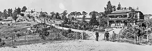 The Victorian School of Forestry (VSF), also known locally as "The School on the Hill", was located at the former Creswick hospital which was built in 1863. The buildings and grounds were purchased for £1,163 7s 3d in 1909 by the Victorian Government and refurbished at the instigation of John Johnstone, (Superintendent of State Plantations), the direction of Donald McLeod,[5] (Minister of Forests, 1904–1909) together with Sir Peter McBride[6] (Minister of Forests, 1909–1913) and the support of Sir Alexander Peacock,[7] who was then the parliamentary representative for the seat of Creswick and later Premier of Victoria.[2] The school's main gates were dedicated to Sir Alexander in 1952.[8]