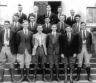 For seven decades from 1910 to 1980, small groups of young men, as few as 6 and up to 20, but usually 10–12, took three-year residential courses graduating with forestry diplomas.[12] Over time the title of the qualifications conferred at Creswick evolved. Early students were granted a School Certificate, but later an Associate Diploma of the School of Forestry, Creswick (A Dip For Cres) was awarded.[12] In 1969 regulations were introduced to rename the award the Diploma of Forestry, Creswick (Dip For Cres).[1] Earlier Associate Diploma qualifications were also upgraded in this process.[12] Around the same time as Victoria split from the Australian Forestry School in Canberra in the 1930s, the Board of Examiners created a more senior award called the Diploma of Forestry, Victoria (Dip For Vic) targeted mostly for Associate Diploma graduates who, after serving for three years in the department, submitted an acceptable thesis on an approved forestry subject to the Board of Forestry Education.[1] Also because of the Victorian Public Service Board (PSB) rules that prevailed at the time, many Associate Diploma holders employed by the Forests Commission held fears about jobs and promotions going to graduates with Degrees and their ability to work interstate.[24] The Dip For Vic qualification was deemed by the Commission and PSB to be equivalent to a Degree for the purposes of promotion and 64 were granted between 1935 and 1983.[1][12][24]