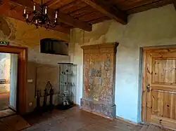 The monastery church became a parish church. The former monastery was used as a clergy house and, after World War II, as a school.[15] After Lithuania declared independence, the damaged and neglected building was returned to the parish. Extensive restoration works started in 1994 with financial support by, among others, Michal Giedroyc, a descendant of the Giedroyć family.[19] During the restoration, workers uncovered murals with portraits of monastery superiors. Originally, there were ten murals created c. 1762, but two were lost.[5][19] After the prolonged restoration, a museum was opened in the former monastery on 4 May 2015 (the 530th death anniversary of Michał Giedroyć).[19] The museum hosts educational workshops, including on candle and Christmas wafer making.[9] The church holds a special mass in honor of Michał Giedroyć on the 4th day of every month.[19]