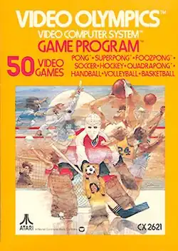 Video Olympics is a sports video game programmed by Joe Decuir for the Atari 2600. It is one of the nine 2600 launch titles Atari, Inc. published when the 2600 system was released in September 1977. The cartridge is a collection of games from Atari's popular arcade Pong series. A similar collection in arcade machine form called Tournament Table was published by Atari in 1978.[3]