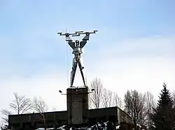 Above the Dam, on the left bank, a sculpture by Constantin Popovici called Electricitate dominates the landscape.[2]