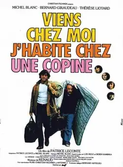 Viens chez moi, j'habite chez une copine (lit. 'Come up to my place, I'm living at a girlfriend's') is a 1981 French comedy film directed by Patrice Leconte, starring Michel Blanc, who also wrote the screenplay with Leconte, Bernard Giraudeau and Thérèse Liotard. The film is loosely based on a play of the same name, which was also the basis for the 1977 American musical I Love My Wife.