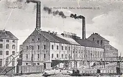 The factory was built by Braunschweigische Maschinenbauanstalt.[9] It required no less than 2,500 piles to get a solid foundation for the factory. Work started in September 1896 and aided by electric light, it continued during the nigtht. On 1 October 1897 the factory became operational. The total cost to found the sugar factory with its terrains, railroads, and harbor came to 1,200,000 guilders.[10][4]