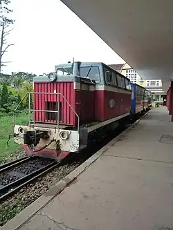 At a more local level, the picturesque hill town and resort of Đà Lạt was once connected by a scenic little rack railway to the main north-south line at Thap Cham.[2] Although there is now little visible trace of the trackbed in the green and fertile landscape, local businesses have secured a promise of government funding for its reinstatement, to benefit tourism in the area.[3] Currently, the only railway at Đà Lạt is an 8 km (5 miles) remnant from the old railway connection that runs from Đà Lạt station to the nearby village of Trại Mát. This is run as a tourist attraction.
