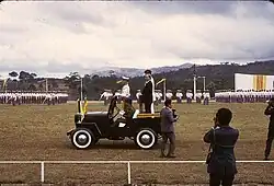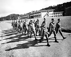 On 20 April 1952, the academy celebrated its first promotion (Hoàng Diệu) with a "baptism" in the Saint Cyr fashion. Celebrating officials included Chief of State, Emperor Bảo Đại, Prime Minister Trần Văn Hữu, the Governor-general of French Indochina and general Raoul Salan, commander of the French Far East Expeditionary Corps.[2] The Emperor awarded the Hoàng Diệu promotions to senior and junior classes with a Saint-Cyr styled saber as new officers of the armed forces. [3] As a symbol of the handover of self-defense responsibility of the whole Vietnam to the Vietnamese National Army, the senior class fired four traditional arrows in each direction (the arrows being a symbol of the old days of imperial Vietnam and its armed forces).[4]