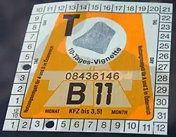 - ^ "Swiss Federal Office for Customs and Border Security > Services > E-vignette". bazg.admin.ch. Retrieved 5 May 2025.