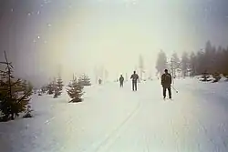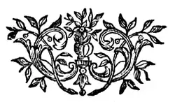 The word vignette means "little vine" in French, and was derived from Old French vigne, meaning “vineyard”.[1] In English, the word was first documented in 1751, and was given the definition “decorative design".[1] This definition refers to decorative artwork of vine-leaves and tendrils used in books as a border around the edges of title pages and the start of chapters.[3] In 1853, the word was used to describe a popular 19th century photographic style, where portraits had blurred edges.[1] The definition of a vignette referring to a “literary sketch” was first recorded in 1880.[1] The idea of the "literary sketch" was derived from the sketch in visual arts - a rough or unfinished drawing or painting, showing the main elements of an artwork.[4] This reflects the characteristics of a vignette; brief and spontaneous, with a sense of immediacy.[5]