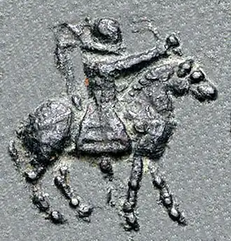 ![]() Vijayamitra riding in armour, holding a whip. Like many other Indo-Scythians, Vijayamitra did not issue portraits. | |