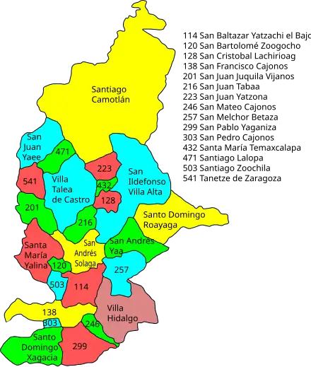- ^ "Distrito 13 Villa Alta" (PDF). oeidrus. Retrieved 2010-08-22.