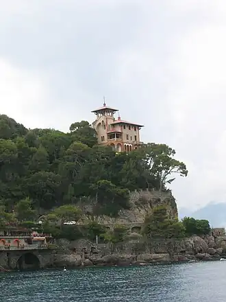 The villa is located in a panoramic position overlooking the sea on the Punta Cajega promontory and it has a large garden surrounded by the Portofino Regional Natural Park, established in 1935.[1][2]