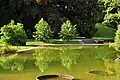 The Schneeligut area integrated on occasion of the 1939 Swiss national exhibition, and the grotto of Karl Stauffer had to be replaced. On occasion of the G59 exhibition, the central puplic square in the garden was rebuilt, and the free-standing wall with the Pergola at the lily pool and the Iridae gardens establisblished.[2] In 1985, the garden area with the Irideae, the so-called Irisgarten, was redesigned by Walter Frischknecht. About 120 different types of Iridae bloom from March (miniature Iris) until July (Iris barbata), and there grow, among many others, Iris pseudacorus and Peony.[3][4]