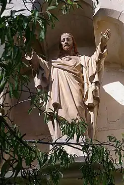 The interior of the Villa Bethania is decorated with religious symbolism that includes a terracotta statue version of Murillo's painting Assumption of the Virgin, a figurine of the Infant Jesus of Prague,[3] a painting of Thérèse of Lisieux (also known as Thérèse of the Child Jesus) and a painted copy of a tapestry by the artist Alphonse Mucha. Stained glass windows depicting symbolism of the Sacred Heart complement the Sacred Heart statue of Jesus Christ situated above the entrance to the Villa.