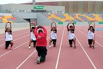 ![]() The Peru Olympic Track Team training at the Estadio Atlético de la VIDENA | |