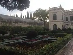 The estate has always been historically known for its beautiful large gardens.[10] The large landscape of the gardens of the palace has given it the name of Francia Estate. Maps show that approximately 90% of the property consist of the gardens.[3] The large gardens are divided into two areas; the prominent one is located at the front of the palace and the vast larger gardens at the back. In the back garden of the palace a nympheum and a large reservoir could be found until day. A small set aside building was built as a headquarters for the maids and workers at the villa. The palace has some unique Maltese architectural features such as sculptures, a remissa and horse stables. In the garden, a coach room, a water mill and 10 fountains can be found. It has a magnificent belvedere surrounded by two hectares of land overlooking Mosta.[6]