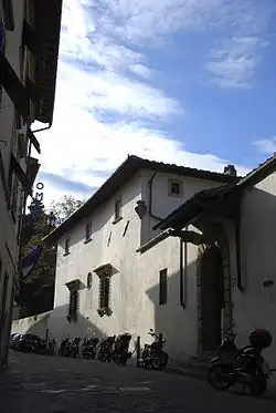 In the centuries thereafter, the house has had various owners: the Del Soldato Family, whose coat of arms is on the façade, and even the nuns of St. Matthew, for which the "Signori Otto" (an ancient Florentine magistracy) adorned a plaque on the façade prohibiting “any card or ball game, ruzzola, or any other kind of game" with severe penalties if caught. In 1788 Senator Clemente Nelli had affixed a plaque dedicated to Galileo on the façade, and in 1843 a bust of the scientist was placed in a niche by the owners. In the 19th century, the building underwent further changes, especially on the upper floor.