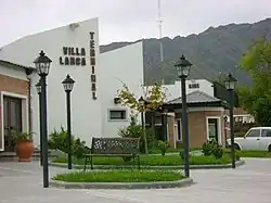 Villa Larca bus station with the Comechingones mountains behind.